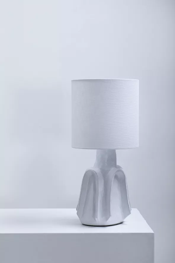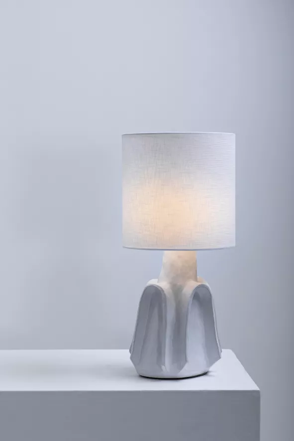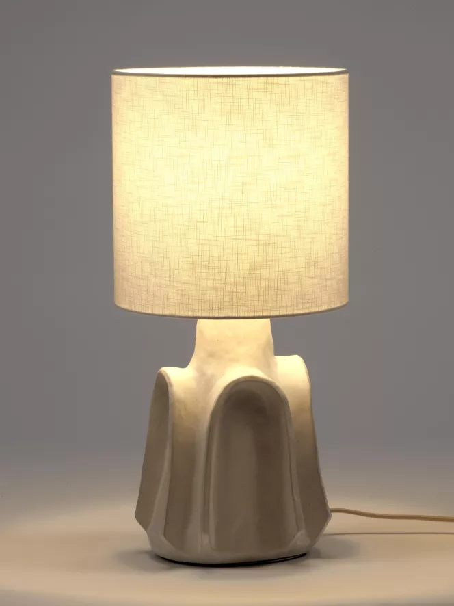 De Billy by Marie Michielssen tafellamp van Serax is volledig wit en heeft een diameter van 25 centimeter, een hoogte van 53 centimeter en een gewicht van 3 kilogram. De lamp is gemaakt van keramiek.