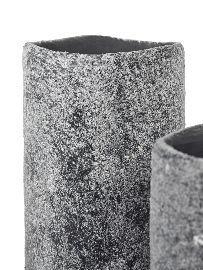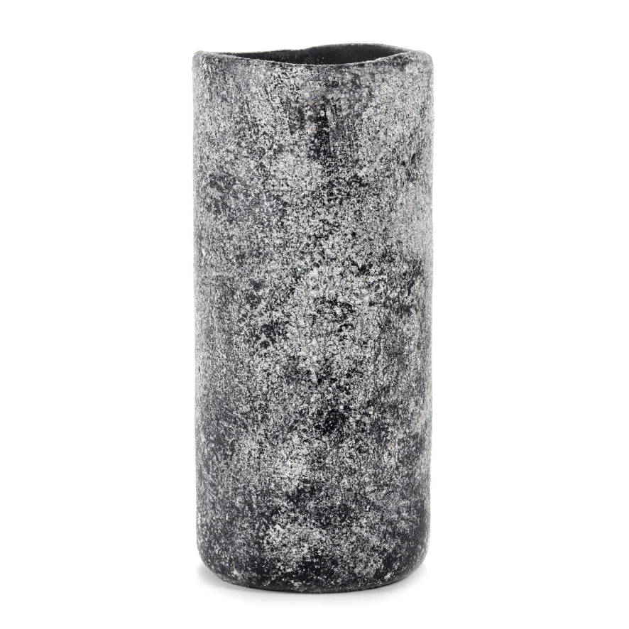 De Black Ancient vaas large grijs van Serax heeft een diameter van 12,5 centimeter en een hoogte van 28 centimeter. De vaas is gemaakt van aardewerk en is aan de binnenkant behandeld met een dunne waterdichte laag. Dit biedt echter geen 100% waterdichtheid, daarom raden wij aan niet direct in de pot te planten. Gebruik een plastic zak of zet de plant in een plastic pot + schotel. De vaas is geschikt voor binnen.