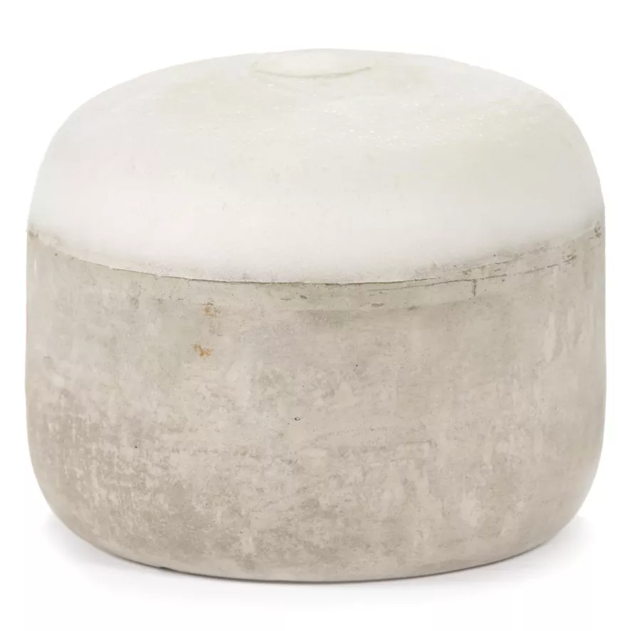 De Concrete by Renate Vos vloerlamp buiten small van Serax is rond en heeft een cementkleurig uiterlijk. De lamp heeft een diameter van 22 centimeter, een hoogte van 18 centimeter en een gewicht van 4 kilogram. De vloerlamp heeft een metalen onderstel en een betonnen lampen kap met een bovenzijde van silicone. De lamp is voorzien van een 5 meter lang snoer. De buiten lamp heeft een ingebouwde LED lichtbron met een maximale voltage van 240.