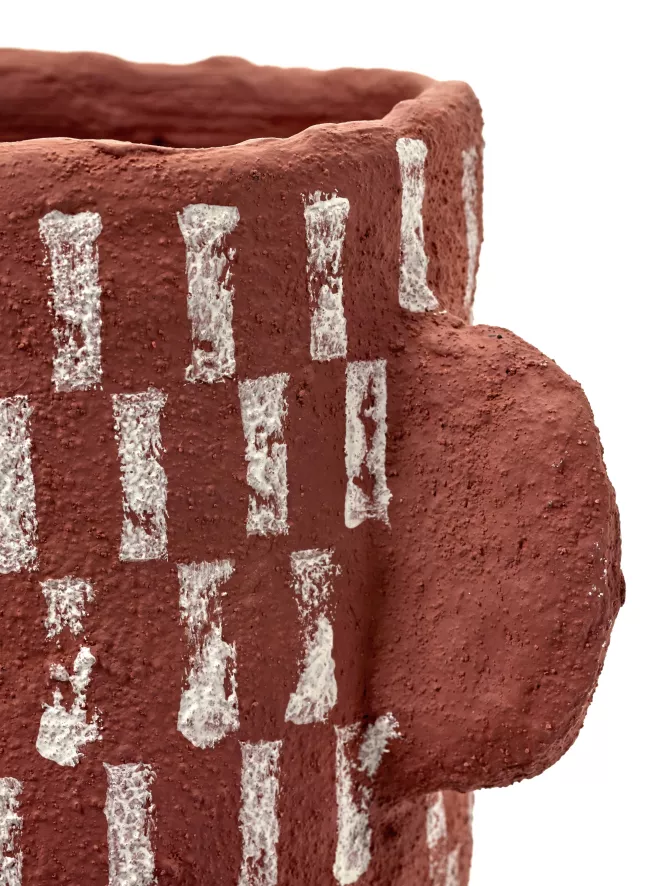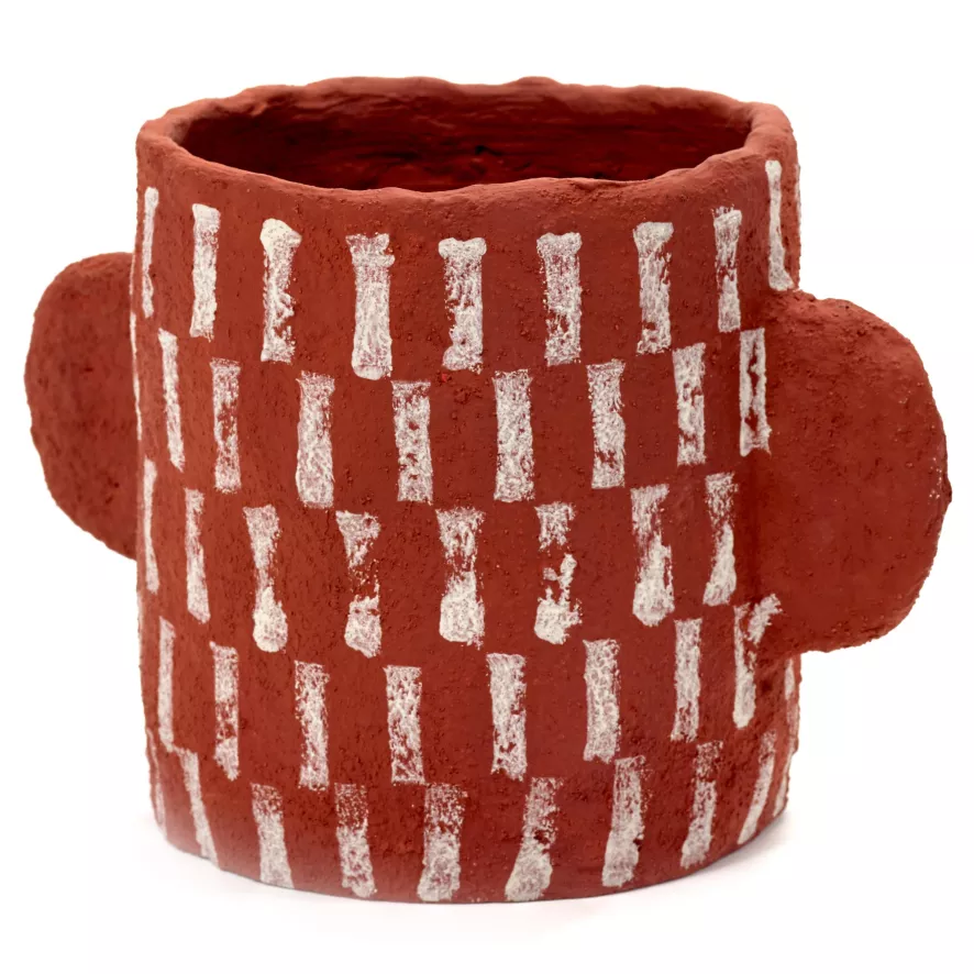 De Earth by Marie Michielssen opberger 20×14 van Serax heeft een rood met wit patroon. De mand heeft een lengte van 20 centimeter, een breedte van 14 centimeter, een hoogte van 14 centimeter en een gewicht van 0,76 kilogram. De opberger is gemaakt van papier-maché.