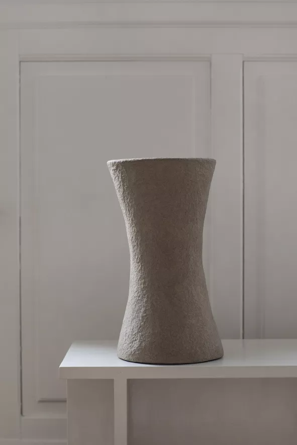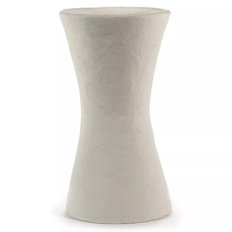 De Earth by Marie Michielssen vaas Ø26 van Serax heeft een ronde zandloper vorm en heeft een diameter van 26 centimeter, een hoogte van 47 centimeter en een gewicht van 4,5 kilogram. De vaas is gemaakt van papier-maché en is verkrijgbaar in verschillende kleuren.