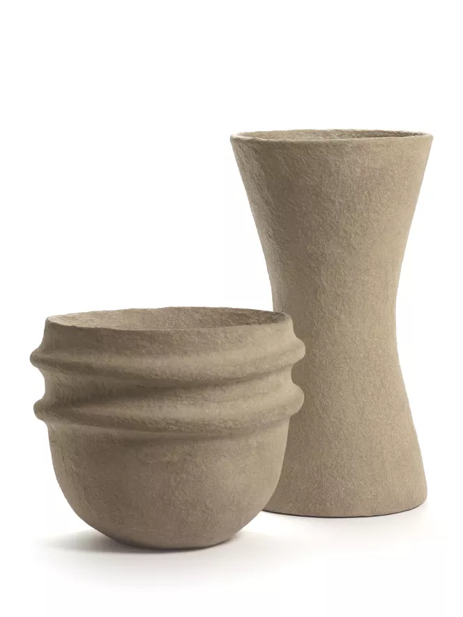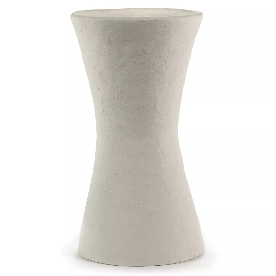De Earth by Marie Michielssen vaas Ø26 van Serax heeft een ronde zandloper vorm en heeft een diameter van 26 centimeter, een hoogte van 47 centimeter en een gewicht van 4,5 kilogram. De vaas is gemaakt van papier-maché en is verkrijgbaar in verschillende kleuren.