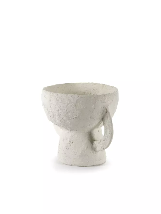 De Earth vaas small van Serax is 23 centimeter lang, 23 centimeter breed en 22,5 centimeter hoog. Ontwerper Marie Michielssen heeft een liefde voor het hergebruiken van materialen dus daarom is de vaas gemaakt van papier maché. Er zit een coating aan de binnenkant zodat je er water in kan doen voor je planten en bloemen. De Earth vaas is verkrijgbaar in verschillende maten en in de vorm van een schaal.