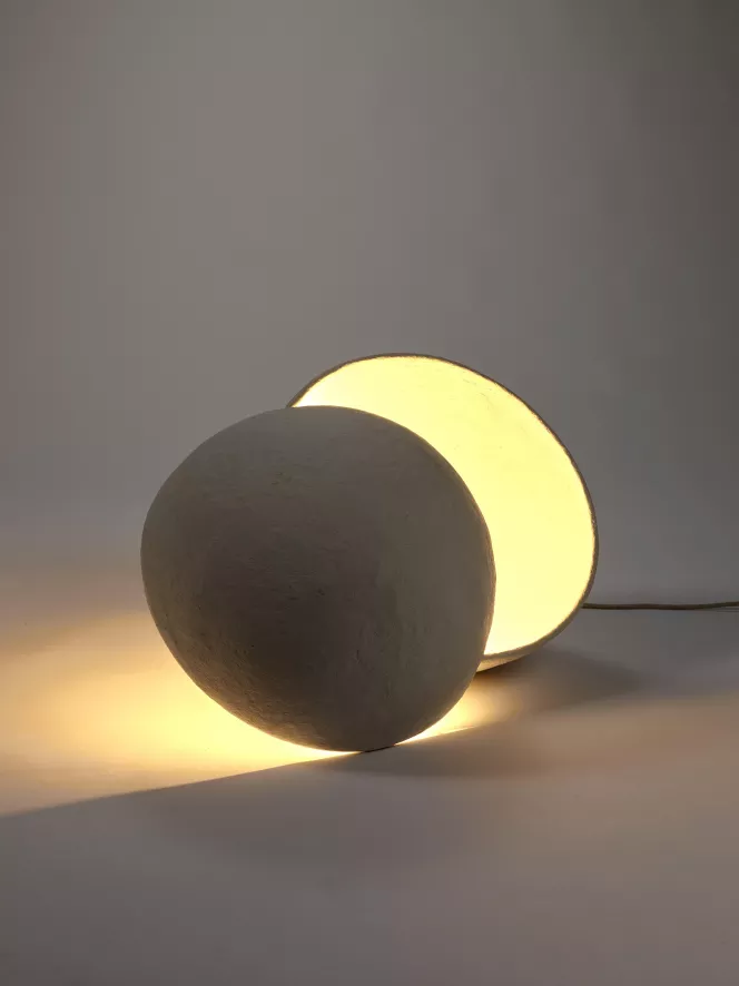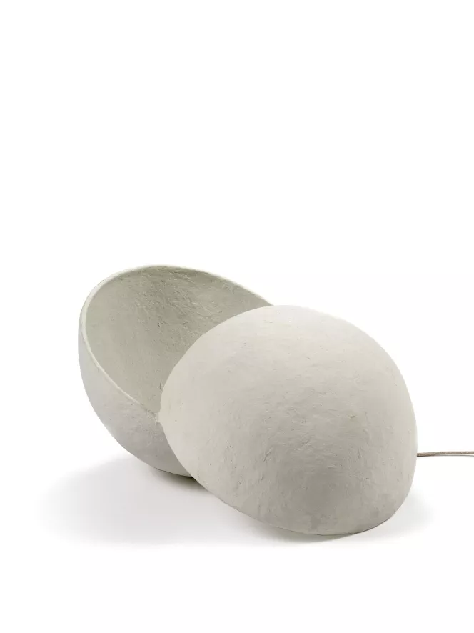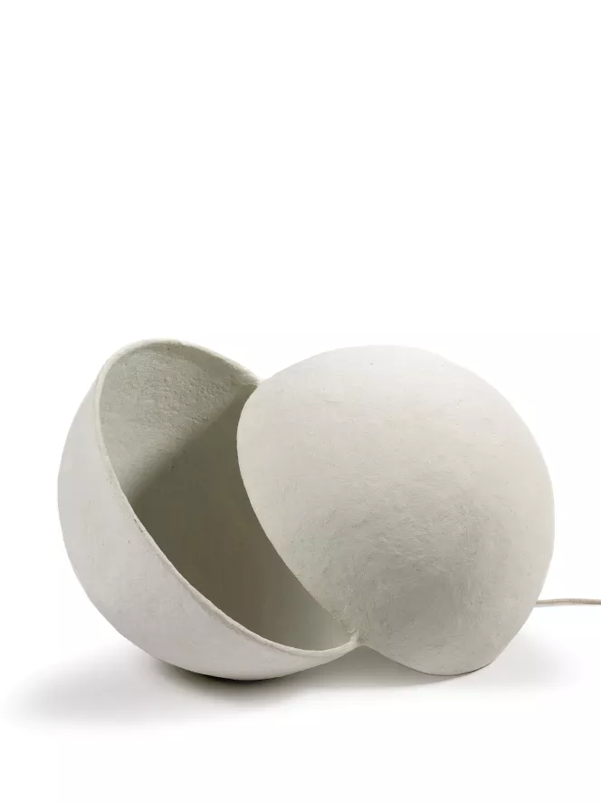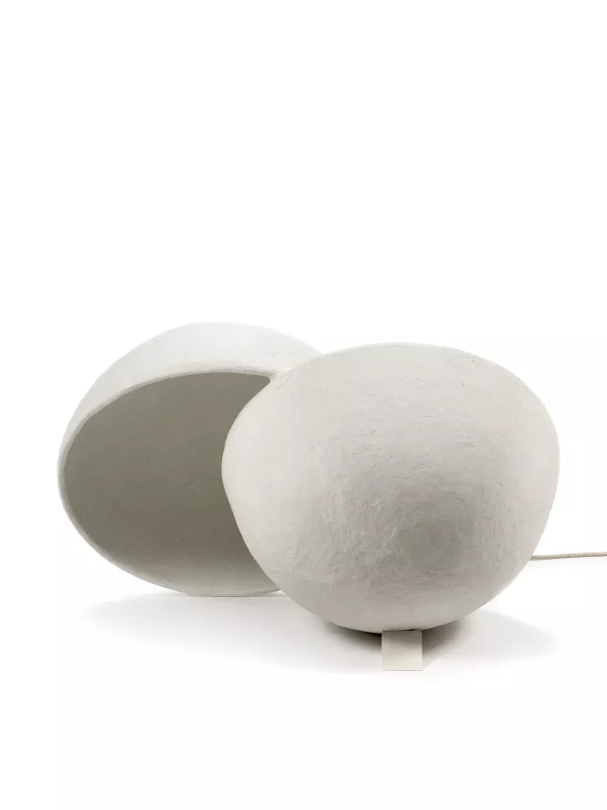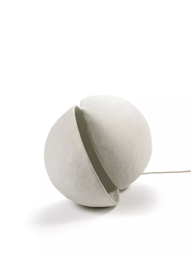 De Earth vloerlamp liggend van Serax is ontworpen door Marie Michielssen. De lamp is 70 centimeter lang, 50 centimeter breed en 37 centimeter hoog. De lamp is wit en weegt 6,5 kilogram. De liggende vloerlamp is gemaakt van papier maché en heeft een kabellengte van 2 meter. De lamp heeft een gewone E27 fitting en een maximale toepasbare Voltage van 240 en een maximale toepasbare Wattage van 5. De lamp bevat een dimfunctie en heeft beschermingsklasse 2. De Earth liggen vloerlamp wordt geleverd met lichtpeer.