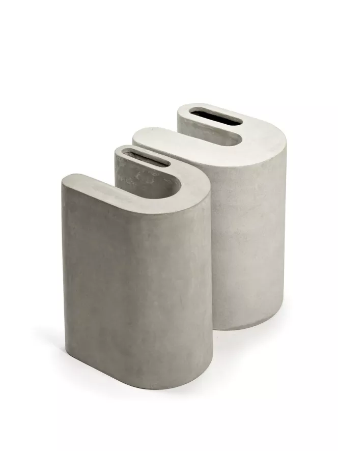 De Vaas set van 2 van Serax is ontworpen door Frédérick Gautier. De set heeft een hoogte van 37 centimeter, een lengte van 40 centimeter en een breedte van 33,5 centimeter. De set is gemaakt van beton en weegt 14,1 kilo.