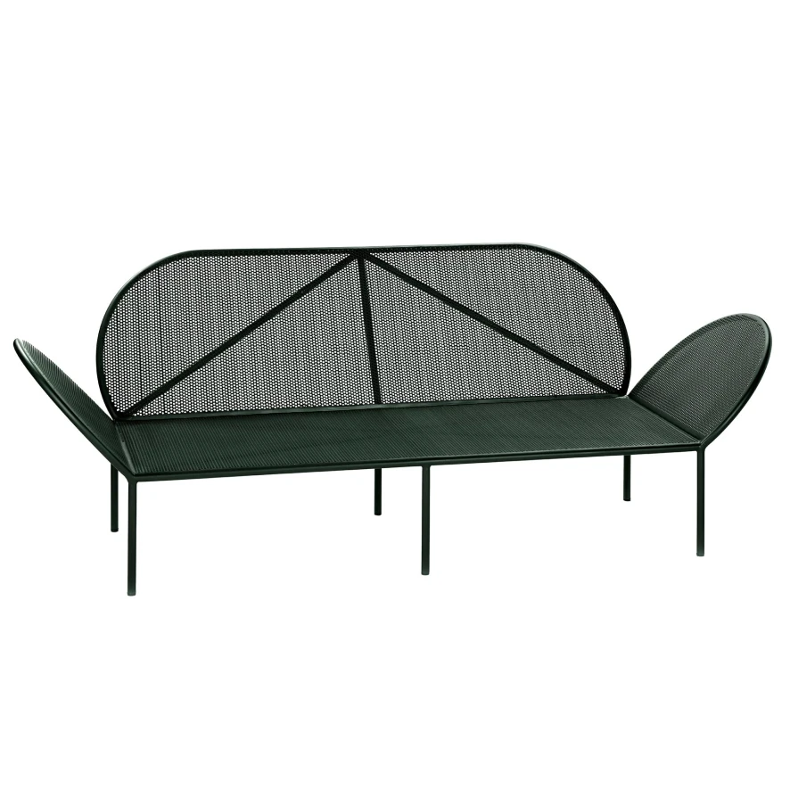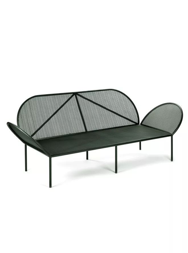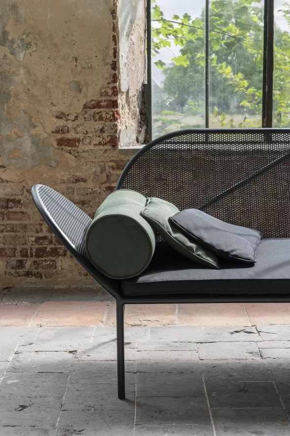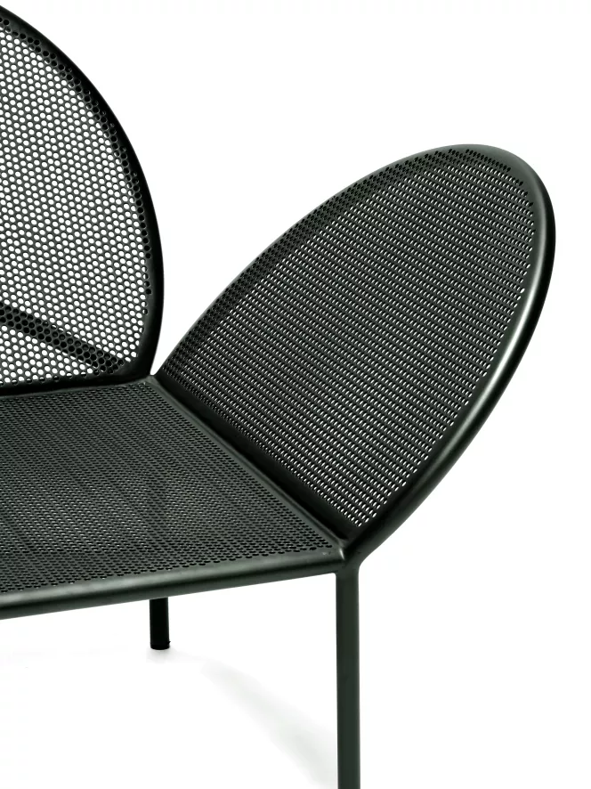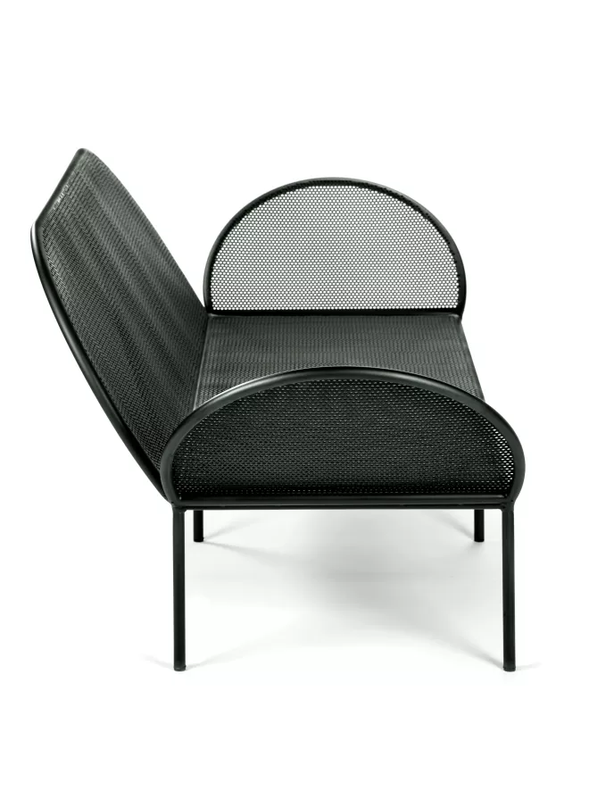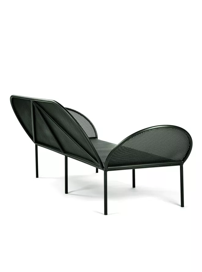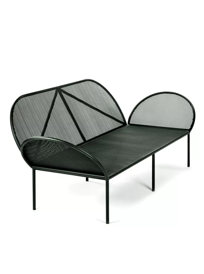 De Fontainebleau loungebank van Serax is ontworpen door José Lévy. De loungebank is 210 centimeter breed, 83 centimeter diep en 75 centimeter hoog. De bank weegt 34 kilogram en is gemaakt van voor verzinkt staal, zinkspray op de lasnaalden en de buitenkant bevat een poedercoating. De beste methode om de loungebank schoon te maken is door hem af te nemen met een vochtige doek (geen spons of schurende doek) en wat schoonmaakmiddel.