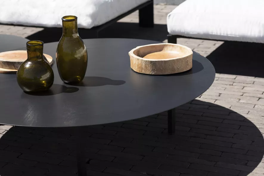 De Coffee table 03 salontafel 118, ontworpen door Bea Mombaers, van Serax heeft een diameter van 118 centimeter en een hoogte van 30 centimeter. De salontafel is gemaakt van staal en heeft een zwarte afwerking. De Coffee table 03 salontafel 118 weegt 29 kilogram en is ook verkrijgbaar in een kleinere variant.