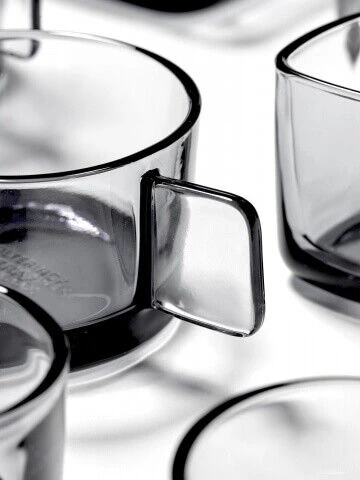 De Serax HEII beker is vervaardigd uit grijs rookglas. De beker heeft een diameter van 8 cm, is 8,5 cm hoog en heeft een inhoud van 250 ml. Ontworpen door Marcel Wolterinck. Gebruik voor het drinken van koude en warme dranken.