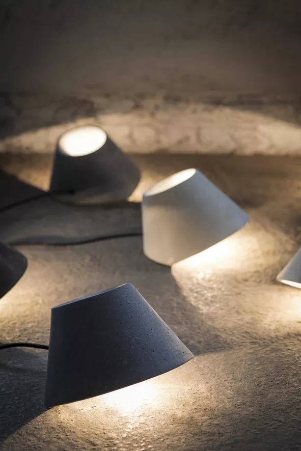 De Eaunophe tafellamp large buiten is 50 centimeter hoog en heeft een diameter van 60 centimeter. De lamp is gemaakt van beton en is verkrijgbaar in 3 kleuren.