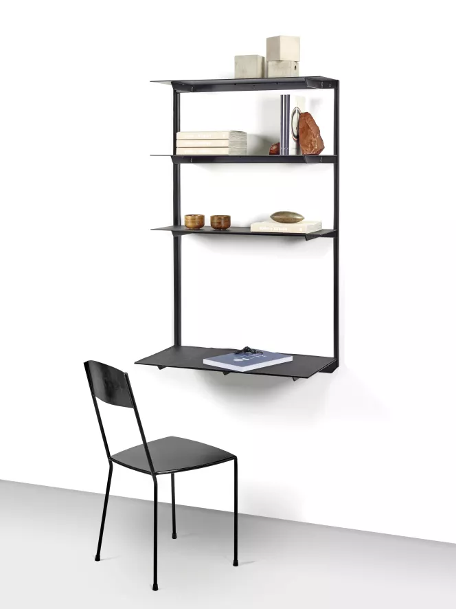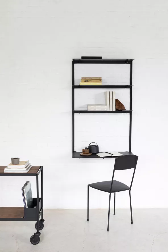 Het Marie by Marie Michielssen wand bureau van Serax heeft een lengte van 75 centimeter, een diepte van 40 centimeter, een hoogte van 120 centimeter en een gewicht van 35,5 kilogram. De werktafel is gemaakt van metaal en heeft een zwarte afwerking.