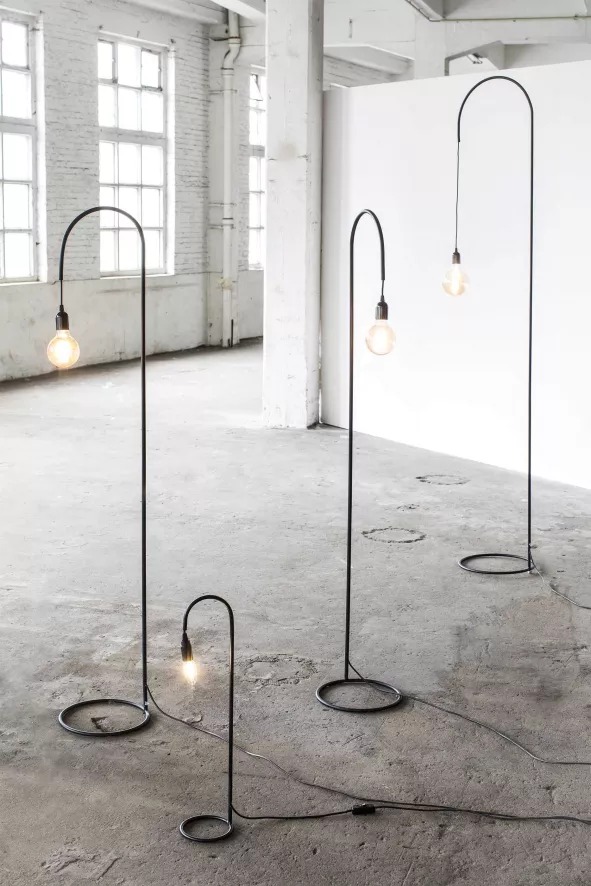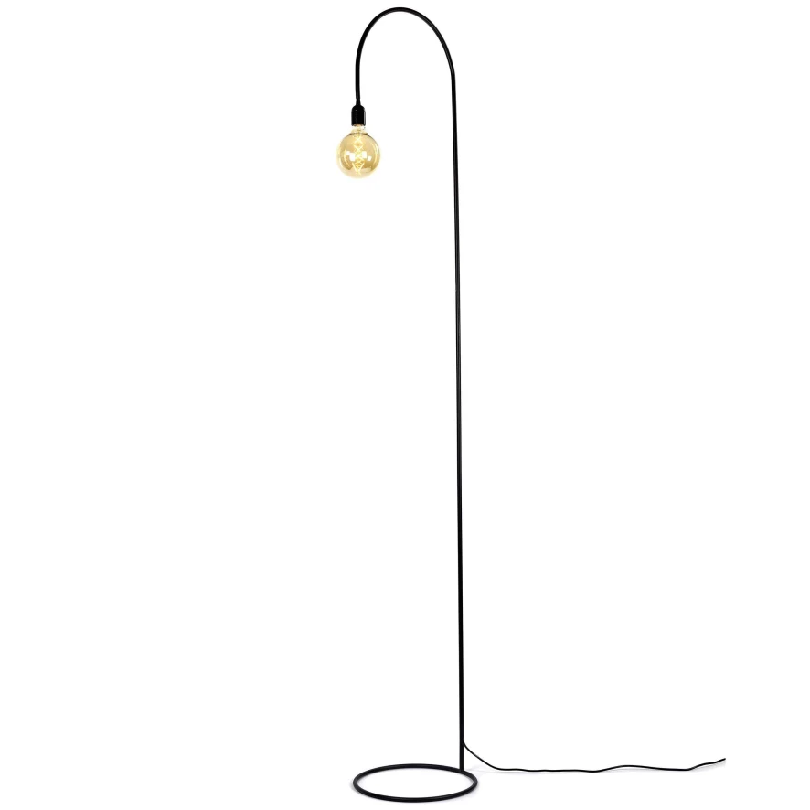 De Circle vloerlamp large van Serax is 217 centimeter hoog. De lamp is gemaakt van ijzer. Het peertje is niet inbegrepen.