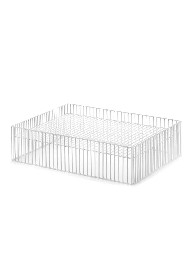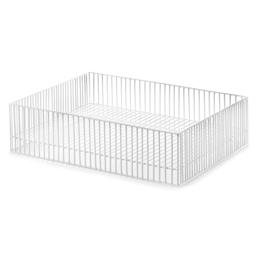 De Basket turn schaal 40×30, ontworpen door Antonino Sciortino, van Serax heeft een lengte van 40 centimeter en een breedte van 30 centimeter. De hoogte van de schaal bedraagt 11 centimeter. De schaal is gemaakt van staaldraden, afgewerkt met een witte poedercoating. De schaal weegt 1,5 kilogram.