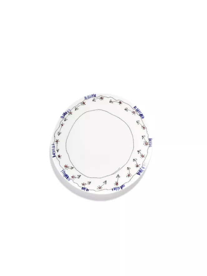 Het Serax Midnight Flowers by Marni Anemone Milk ontbijtbord Ø20 is ontworpen door Francesco Risso. Het ontbijtbord heeft een diameter van 20 centimeter en een hoogte van 1 centimeter. Het bord is gemaakt van porselein en is voorzien van een met de hand geïllustreerde, botanische afbeelding. Het bord is met de hand gemaakt en heeft een asymmetrische vorm. Het bord is afgewerkt met een glazuurlaag. Dit ontbijtbord heeft een gewicht van 0,35 kilogram en is verkrijgbaar in verschillende kleuren en patronen. Dit bord wordt per twee stuks geleverd. Het Midnight Flowers by Marni Anemone Milk ontbijtbord Ø20 van Serax komt uit de gelijknamige Midnight Flowers by Marni collectie en is in diverse uitvoeringen verkrijgbaar.