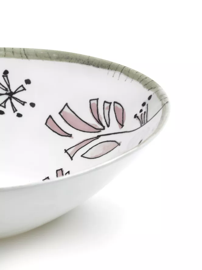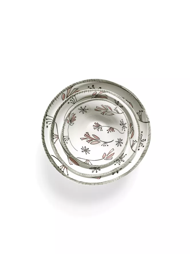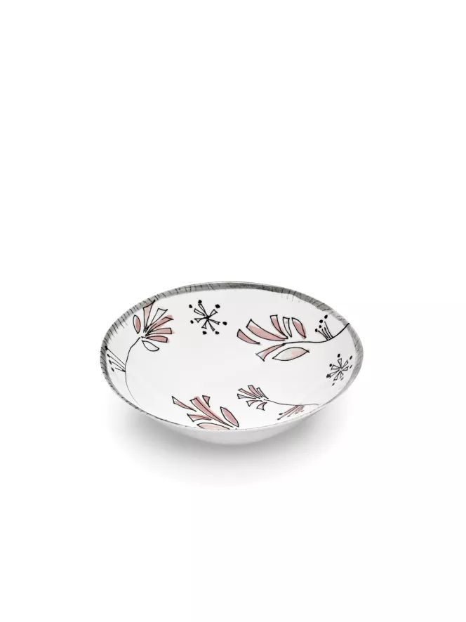 De Serax Midnight Flowers by Marni Fiore Rosa Kom Ø22 is ontworpen door Francesco Risso. De Midnight Flowers by Marni Fiore Rosa kom Ø22 van Serax heeft een diameter van 22 centimeter en een hoogte van 6,8 centimeter. De kom is gemaakt van porselein en is voorzien van een botanische tekening die met de hand geïllustreerd is. De kom is afgewerkt met een beschermende glazuurlaag, heeft een gewicht van 0,54 kilogram en wordt per twee stuks geleverd. De Midnight Flowers by Marni Fiore Rosa kom Ø22 van Serax komt uit de gelijknamige Midnight Flowers by Marni collectie en is in verschillende uitvoeringen verkrijgbaar.