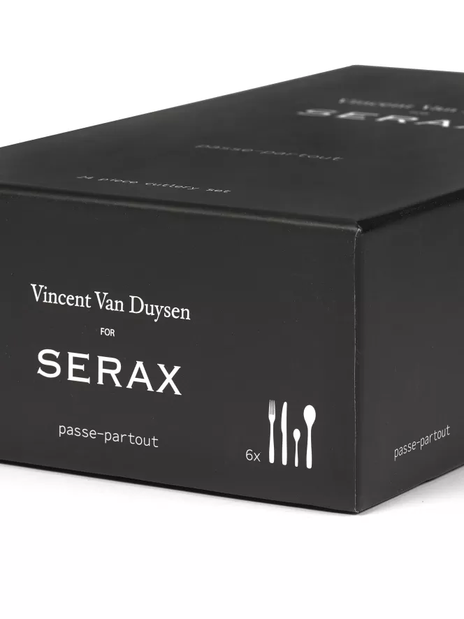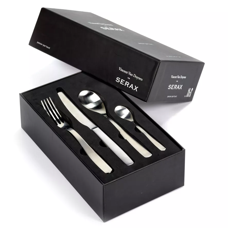 De Passe Partout bestekset, ontworpen door Vincent Van Duysen, van Serax is gemaakt van roestvrijstaal, afgewerkt met een matte finish De set wordt gemaakt op traditionele wijze met de hand gemaakt. De set is niet geschikt voor in de vaatwasser, magnetron of oven. Serax raadt aan de set met een beetje zeep en warm water te reinigen.