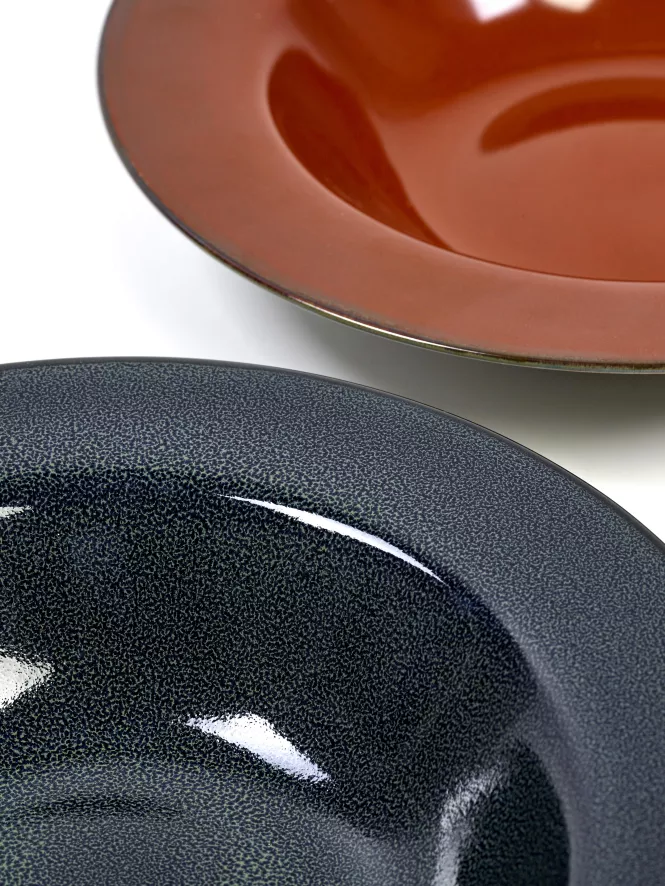Het Serax Terres de Rêves by Anita le Grelle pastabord Ø21,3 is ontworpen door Anita Le Grelle. Het Terres de Rêves by Anita le Grelle pastabord Ø21,3 van Serax heeft een diameter van 21,3 centimeter en een hoogte van 5 centimeter. Dit pastabord is gemaakt van keramiek en is vaatwasmachine en-magnetronbestendig. Het bord is niet ovenbestendig en mag dus niet in de oven geplaatst worden. Het pastabord dient met een zacht afwasmiddel gereinigd te worden. Dit bord is afkomstig uit de gelijknamige Terres de Rêves collectie van Serax die geïnspireerd is op aardse schoonheden. Hierdoor hebben de items een bewuste natuurlijke vorm en kleine imperfecties. Dit maakt alle items uniek. Het daadwerkelijke product kan dan ook licht afwijken van de getoonde afbeeldingen. Het Terres de Rêves by Anita le Grelle pastabord van Serax is in verschillende formaten en kleuren verkrijgbaar. Het pastabord wordt verkocht per set van 4.