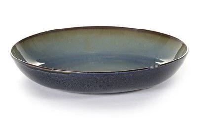 Het Serax Terres de Rêves pastabord heeft een diameter van 23,5 cm en is 4,5 cm hoog. Het van stoneware gemaakte bord heeft een rookblauw, donker blauw gemêleerd glazuur.